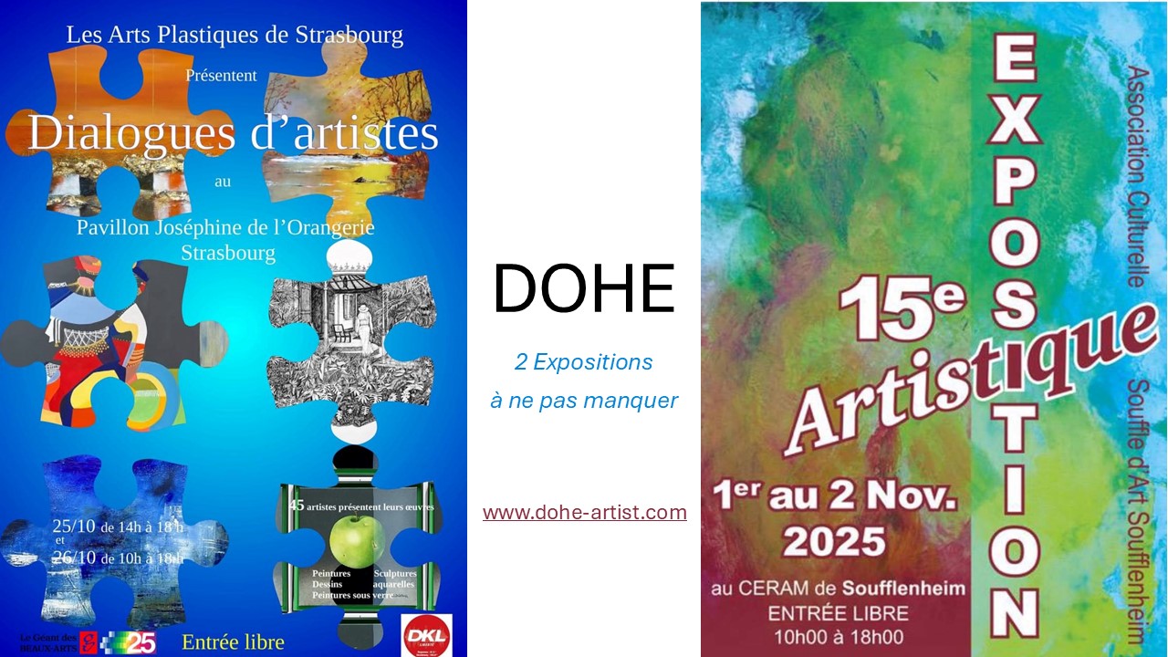 Dohe peint depuis de nombreuses années. C'est une artiste autodidacte ayant fréquenté des ateliers strasbourgeois de renom. Elle est membre de l'association des arts plastiques de Strasbourg.